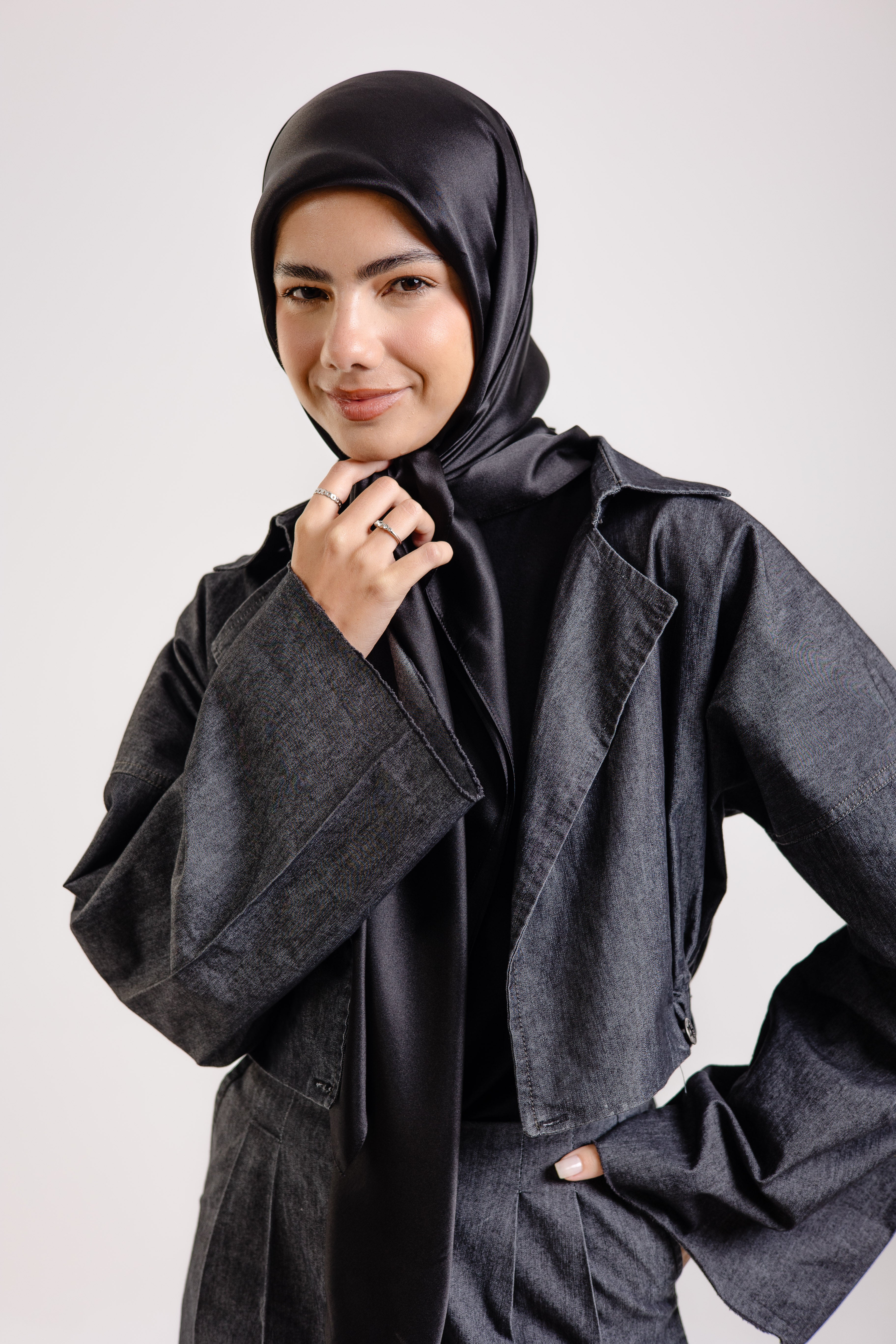 From Worood’s luxury silk scarf collection, the Square Black Silk Scarf is a premium silk fabric scarf crafted for pure elegance, mystery, and enduring style.