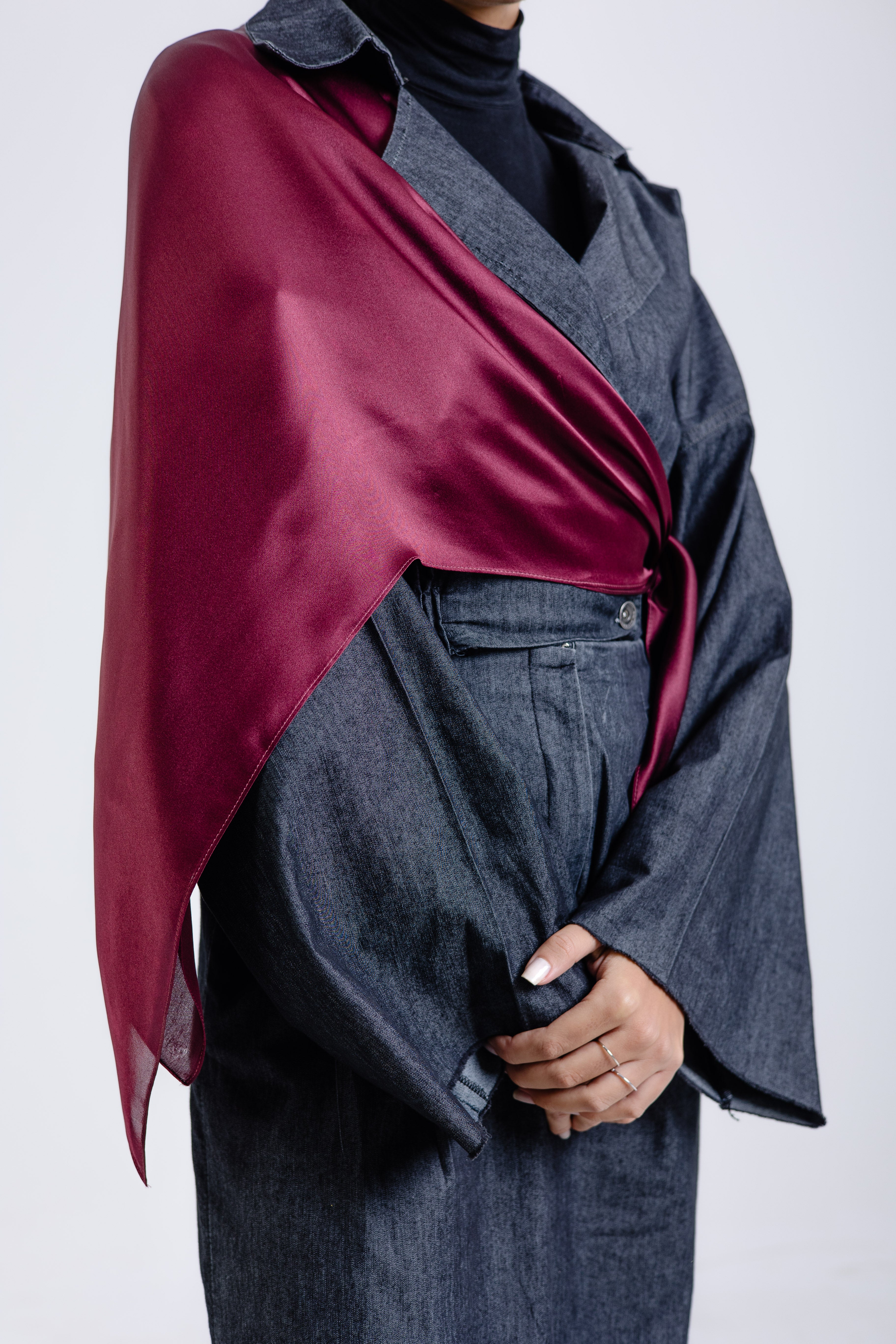 From Worood’s luxury silk scarf collection, the Square Maroon Silk Scarf is a scarf crafted for presence, passion, and pure allure.
