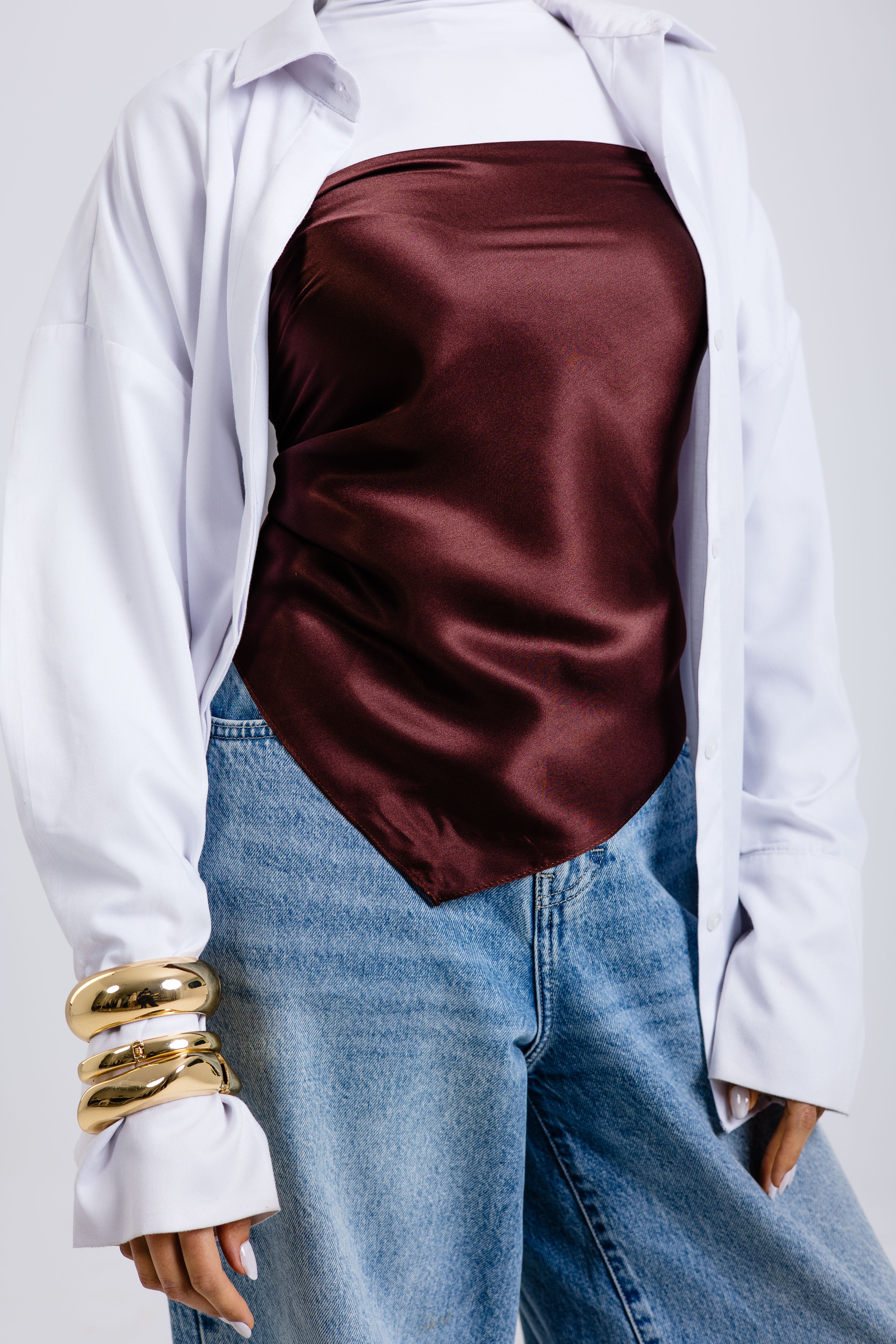 Each fold tempers like chocolate, rich and smooth. Bitterness is tamed by silk; sweetness drawn out by shine.
